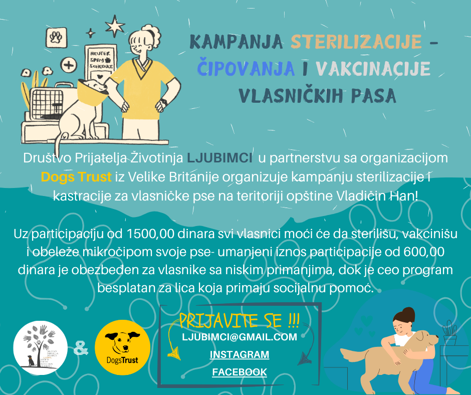 U partnerstvu sa organizacijom Dogs Trust omogućeno je svima koji žive u Vladičinom Hanu da po minimalnom iznosu odrade trostruki posao- da poboljšaju kvalitet života svom ljubimcu, da budu odgovorni vlasnici i da doprinesu smanjenju populacije neželjenih pasa tako što će sterilisati svog ljubimca.